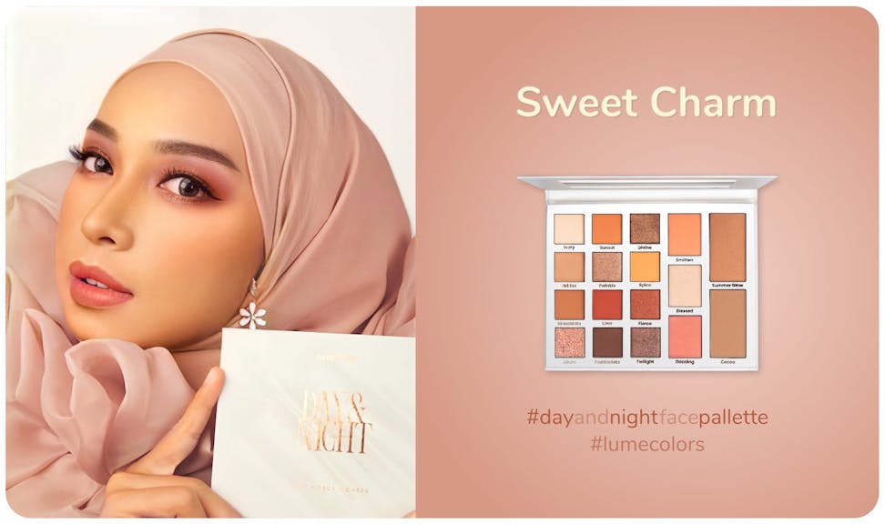 Lumecolors Day & Night Palette Eyeshadow memiliki tampilan warna yang natural sehingga cocok digunakan untuk semua jenis kulit dan dipakai untuk sehari-hari.