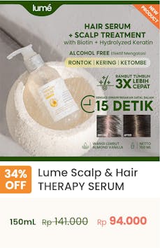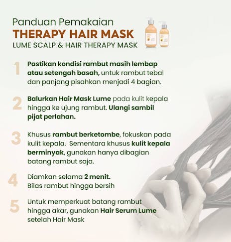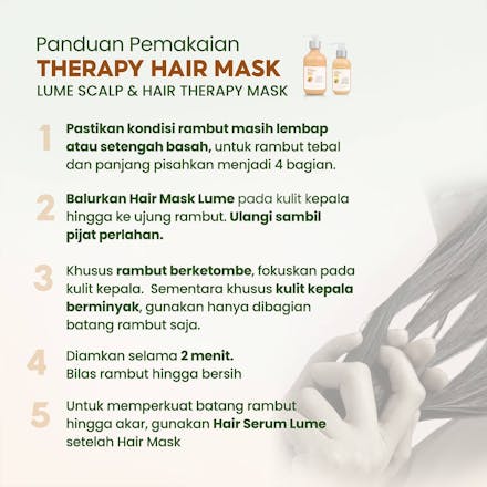 5. Untuk memperkuat batang rambut hingga akar, gunakan Lume Hair Serum setelah penggunaan Lume Hair Mask